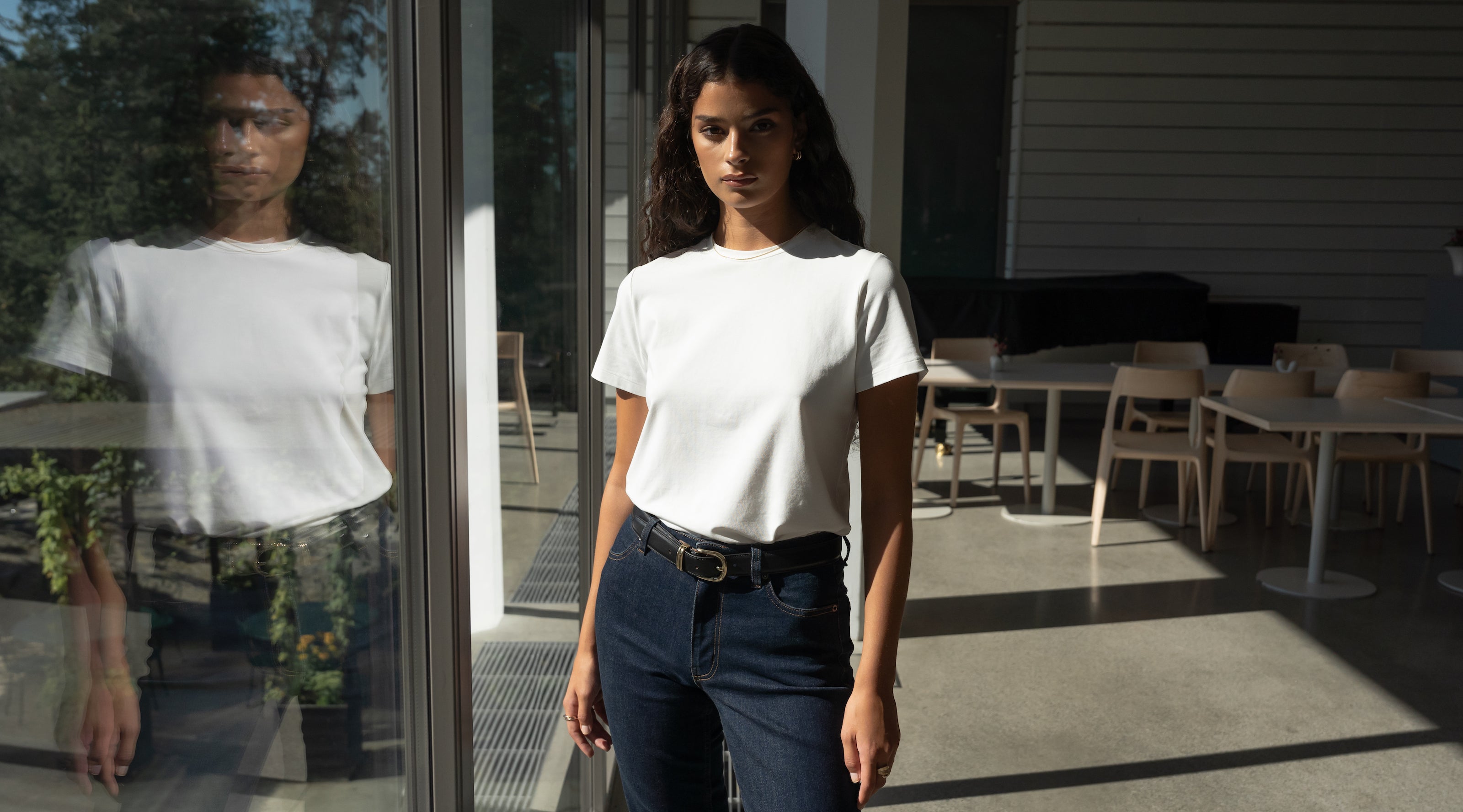- With denim: delivers effortless everyday styling, where a premium cotton white tee ensures the outfit feels considered rather than basic