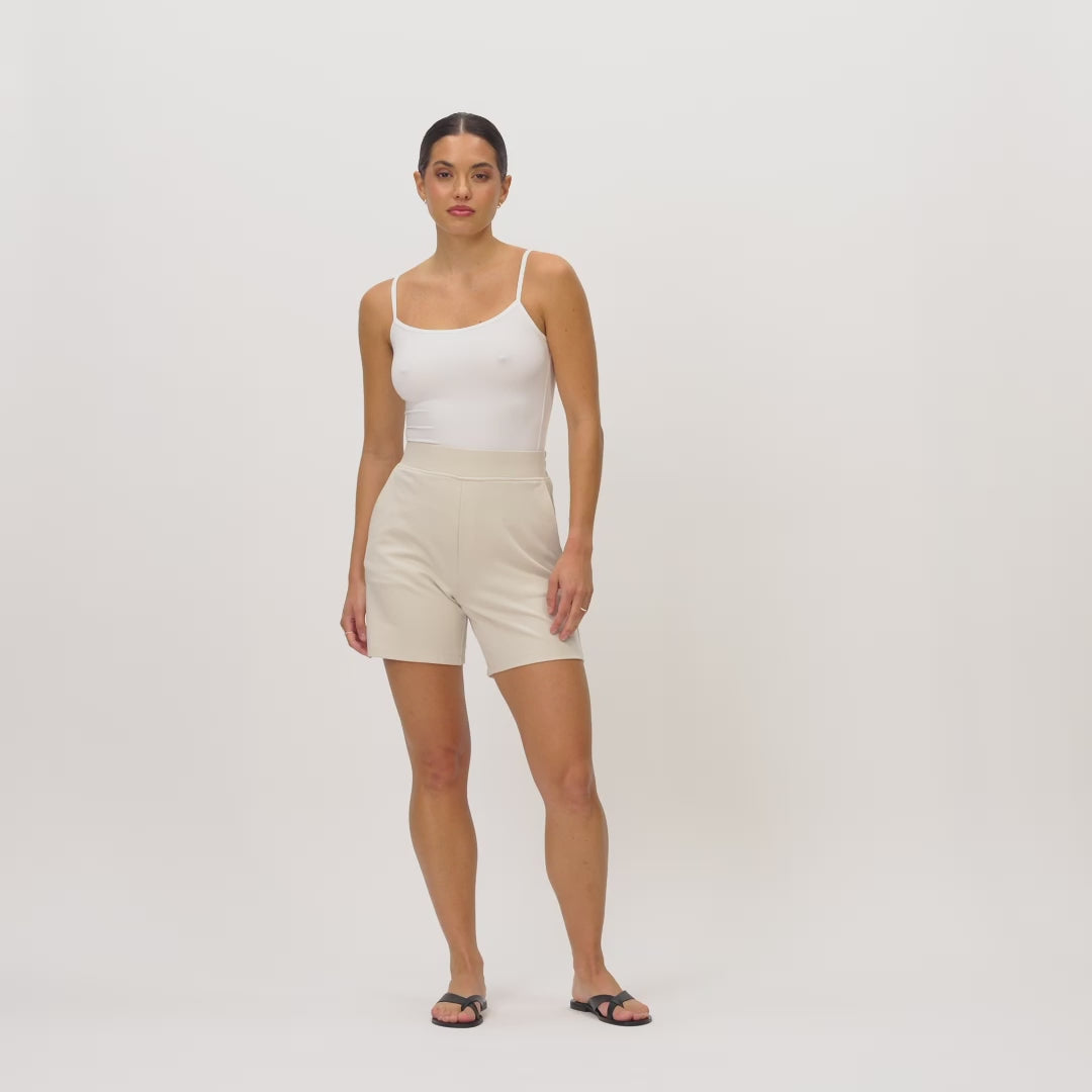 Entdecken Sie ultimativen Komfort und mühelosen Stil mit unseren leichten Ponte-Shorts, die sich perfekt für elegante oder legere Outfits eignen. Diese Shorts aus weichem, dehnbarem Stoff passen zu einer Vielzahl von Styles.