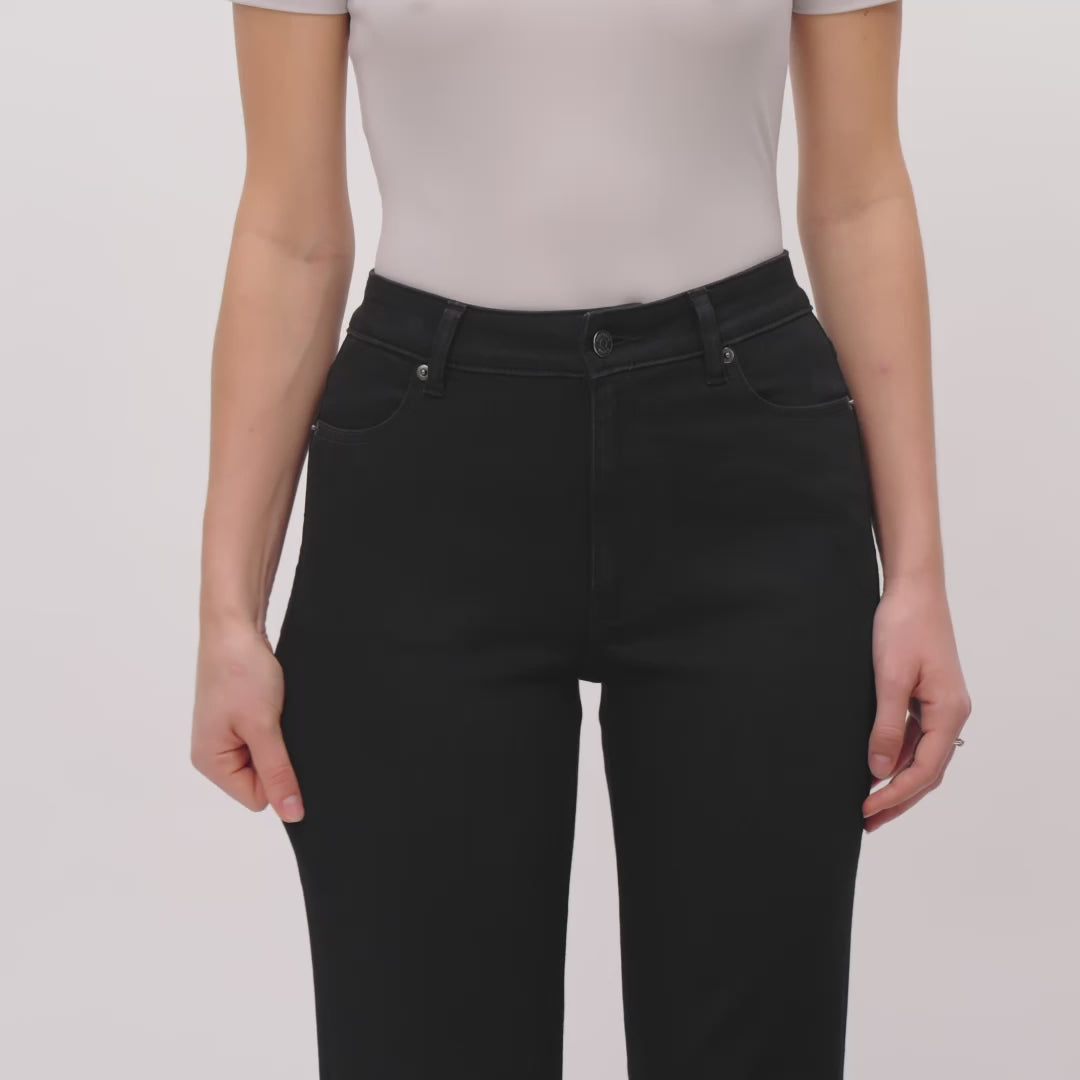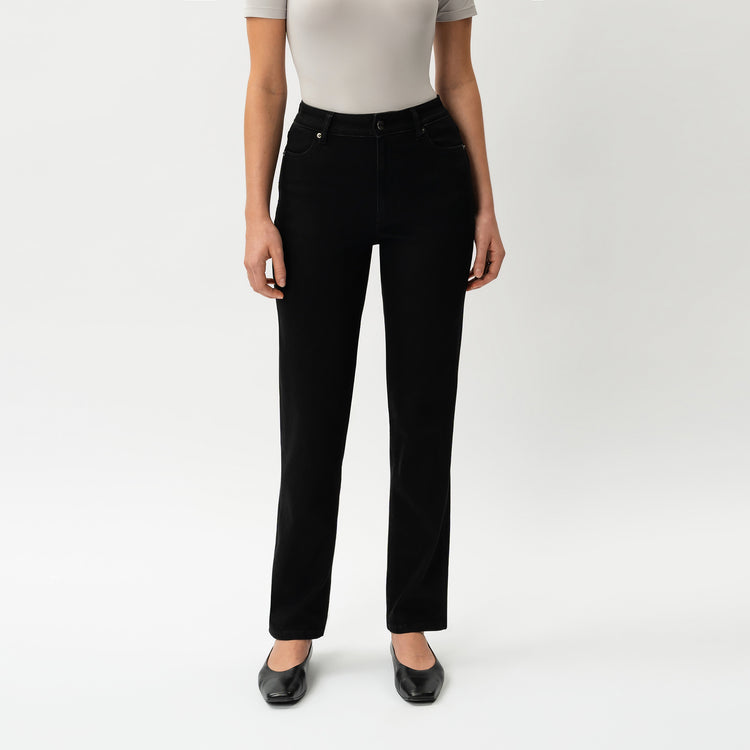 Erleben Sie den klassischen Look von Denim mit dem Komfort unglaublicher Dehnbarkeit. Unsere hoch taillierten Jeans mit geradem Bein sind aus einer firmeneigenen Denim-Mischung gefertigt, die sowohl sehr dehnbar als auch dick ist und das Gefühl von traditionellem Denim mit zusätzlicher Flexibilität vermittelt. Diese vielseitigen Jeans sind perfekt für den Alltag und ein Must-have in Ihrer Capsule Wardrobe.
