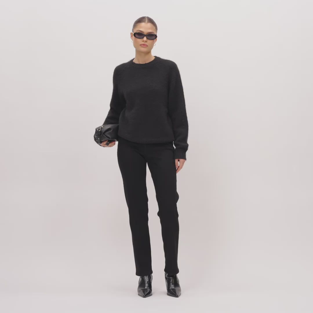 Im Vergleich zu unserem blauen Indigo-Denim verwendet die schwarze Version eine speziell angepasste Fasermischung, um optimale Farbstabilität, Weichheit und Stretch-Eigenschaften zu gewährleisten.