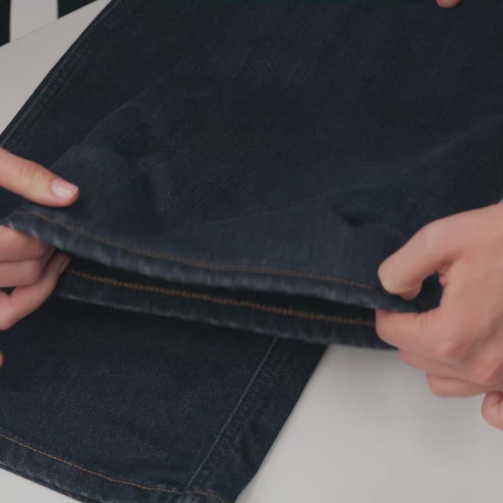 Ein 12-Unzen-Stretch-Denim mit dem authentischen Look und der Textur von klassischem Rigid-Denim, verbessert durch eine weiche Fleece-Rückseite für zusätzliche Wärme und Komfort bei kälterem Wetter. Kombiniert traditionellen Charakter mit moderner Bewegungsfreiheit.