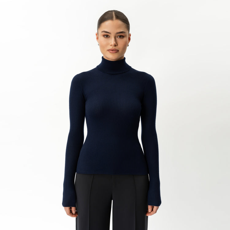 Merinowolle gerippter Rollkragenpullover – Ninepine