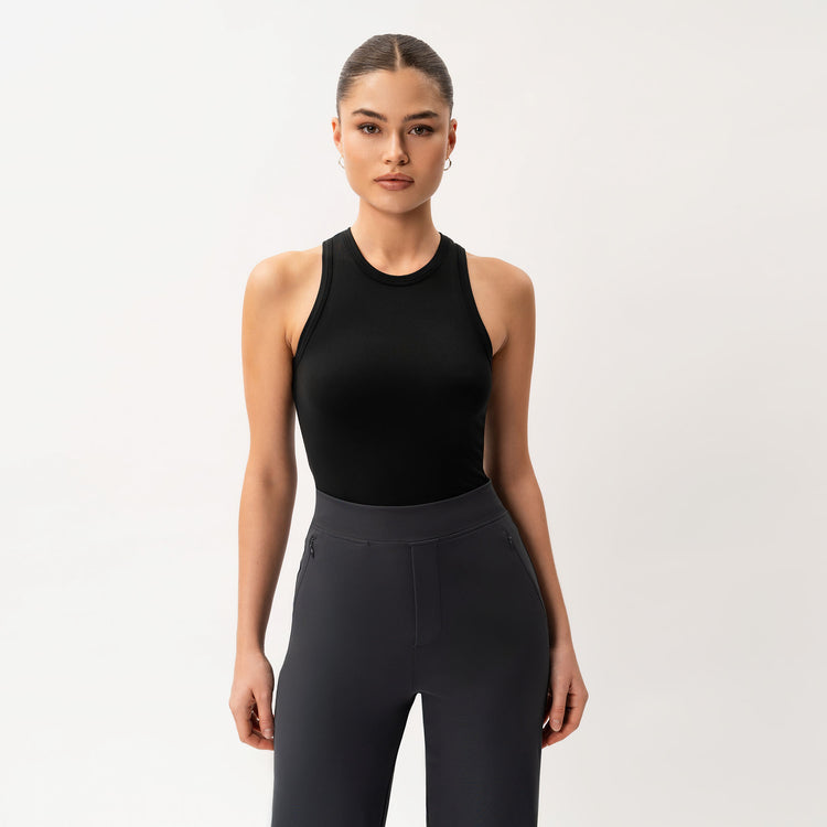 • Eng anliegender und hoch elastischer Jersey mit Racerback-Design