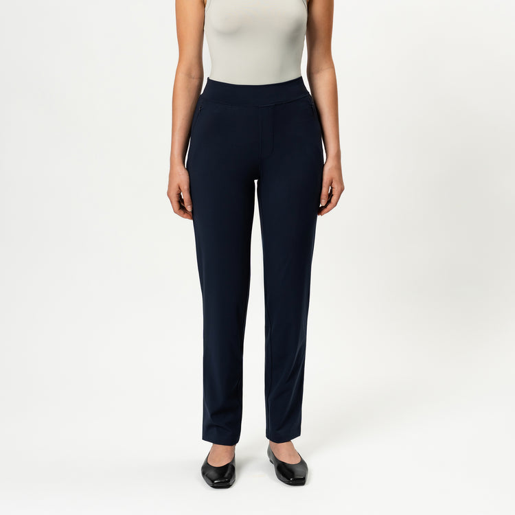 Asana Slim Pant, eine pfirsichweiche, schmale, knöchellange Hose, die maßgeschneiderten Stil mit dem Komfort von Loungewear verbindet. Für eine knöchellange Passform wählen Sie eine Länge, die 5 oder 10 cm kürzer ist als Ihre normale Hose. Mit diskreten Reißverschlusstaschen, einem hohen Bund und einem gebürsteten Activewear-Strick ist sie ideal für den Alltag, die Arbeit, Reisen und zum Entspannen.
