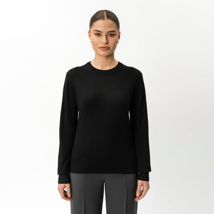 Dieser leichte Pullover mit Rundhalsausschnitt besteht zu 100 % aus verantwortungsvoll gewonnener Merinowolle und zeichnet sich durch eine lockere Passform und eine vollmodische Verarbeitung aus, die ihm einen klaren, eleganten Look verleiht. Er eignet sich perfekt zum Kombinieren oder allein Tragen und ist von Natur aus weich, atmungsaktiv und temperaturregulierend. Die Wolle wird von zertifizierten Lieferkettenpartnern bezogen, die sich für Tierschutz und nachhaltige Landbewirtschaftung einsetzen.