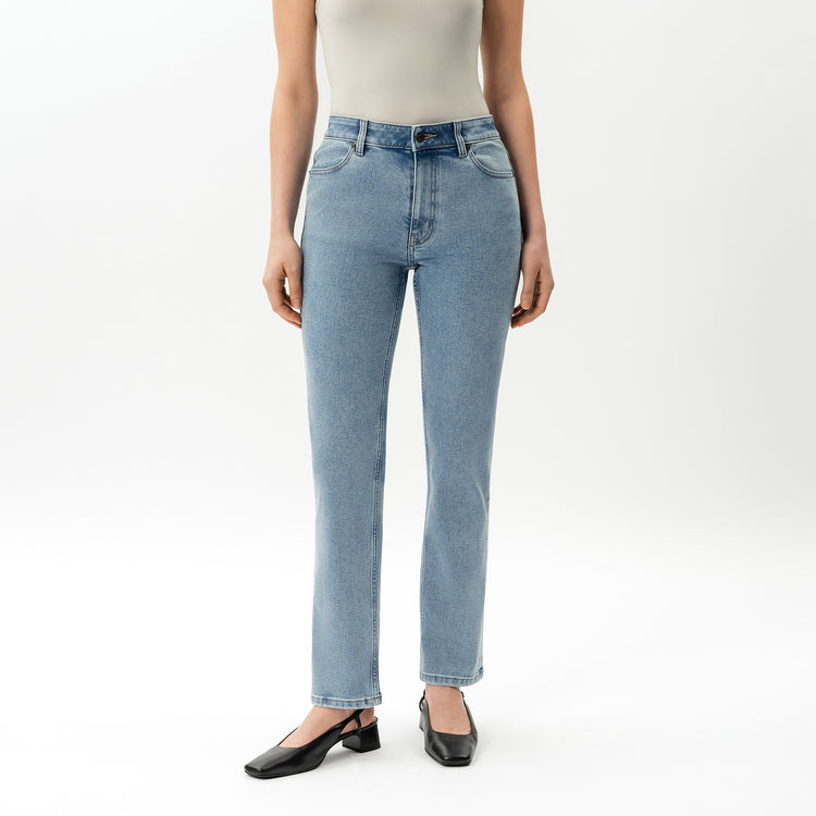 Erleben Sie den klassischen Look von Denim mit dem Komfort unglaublicher Dehnbarkeit. Unsere hoch taillierten, geraden Slim-Fit-Jeans sind aus einer firmeneigenen Denim-Mischung gefertigt, die sowohl sehr dehnbar als auch dick ist und das Gefühl von traditionellem Denim mit zusätzlicher Flexibilität vermittelt. Diese vielseitigen Jeans sind perfekt für den Alltag und ein Must-have in Ihrem Kleiderschrank.
